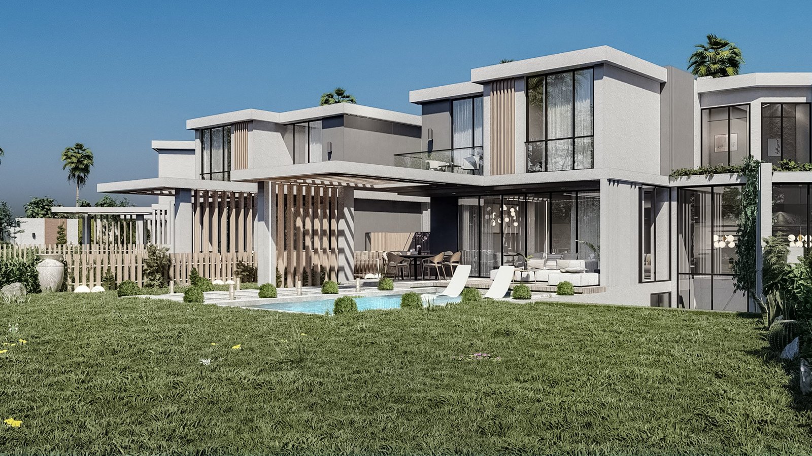 • Contemporary Architectural Design: The villas showcase a modern architectural style with sleek lines, premium materials, and open-plan layouts for a sophisticated living experience.