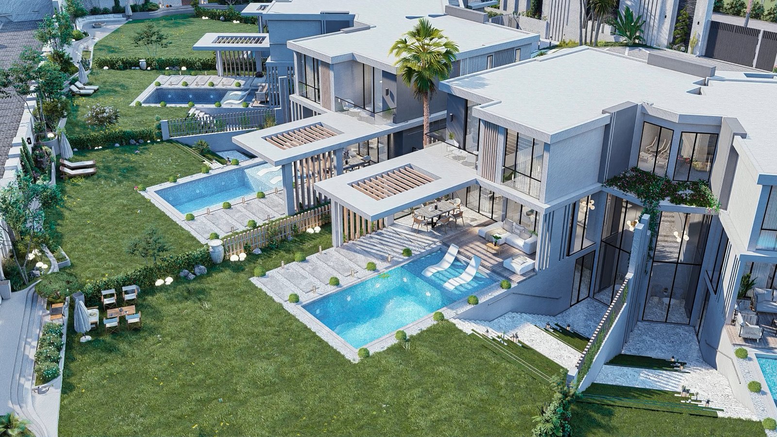• Spacious Outdoor Terraces: Wide terraces are integrated into each villa, offering stunning views and perfect spaces for outdoor entertainment or relaxation.
