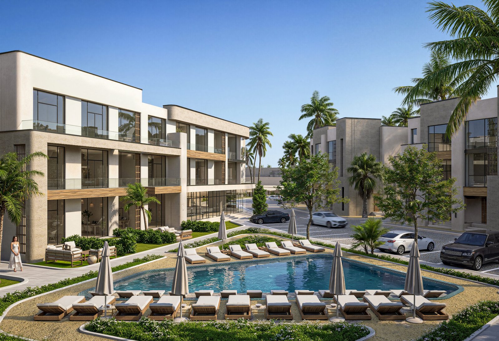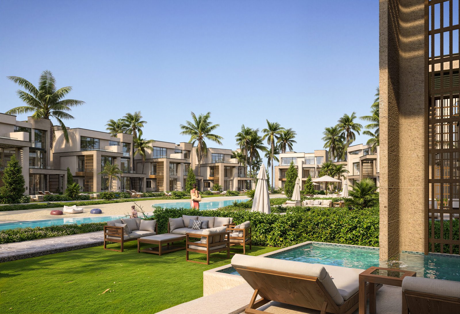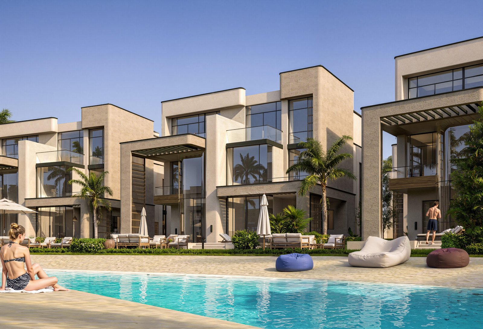• Private & Communal Aquatic Layers: A dual-layer luxury offering. Residents benefit from the massive communal lagoon for social interaction and private pools for absolute seclusion within their own architectural footprint.