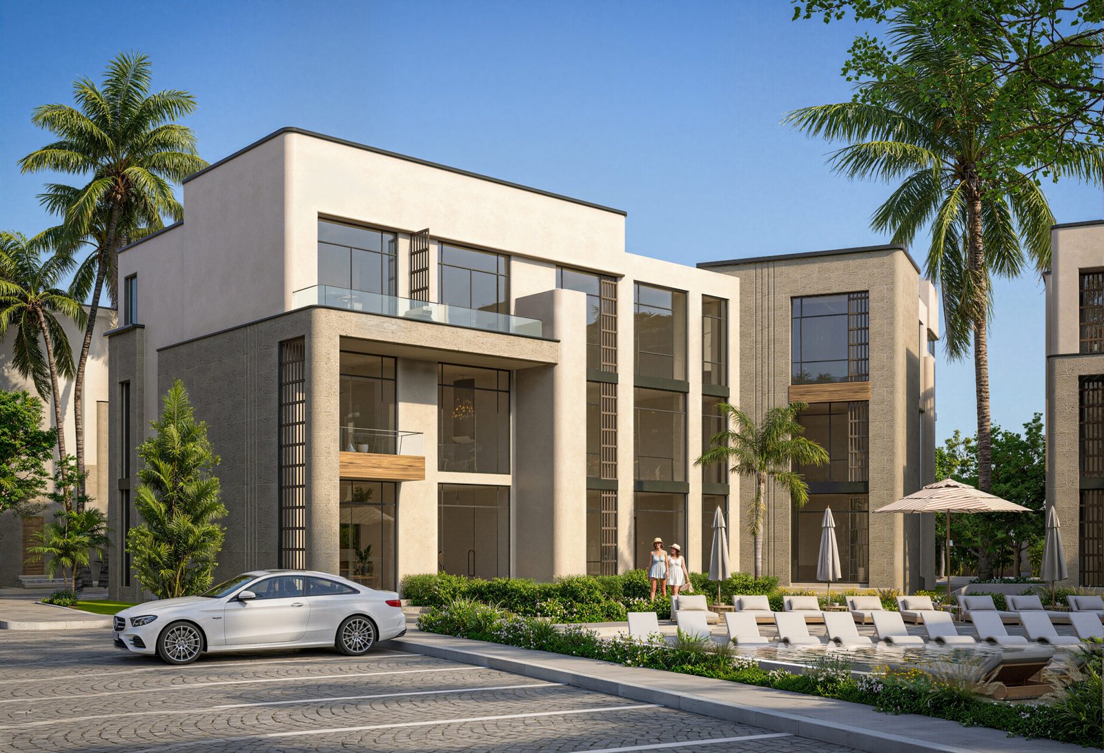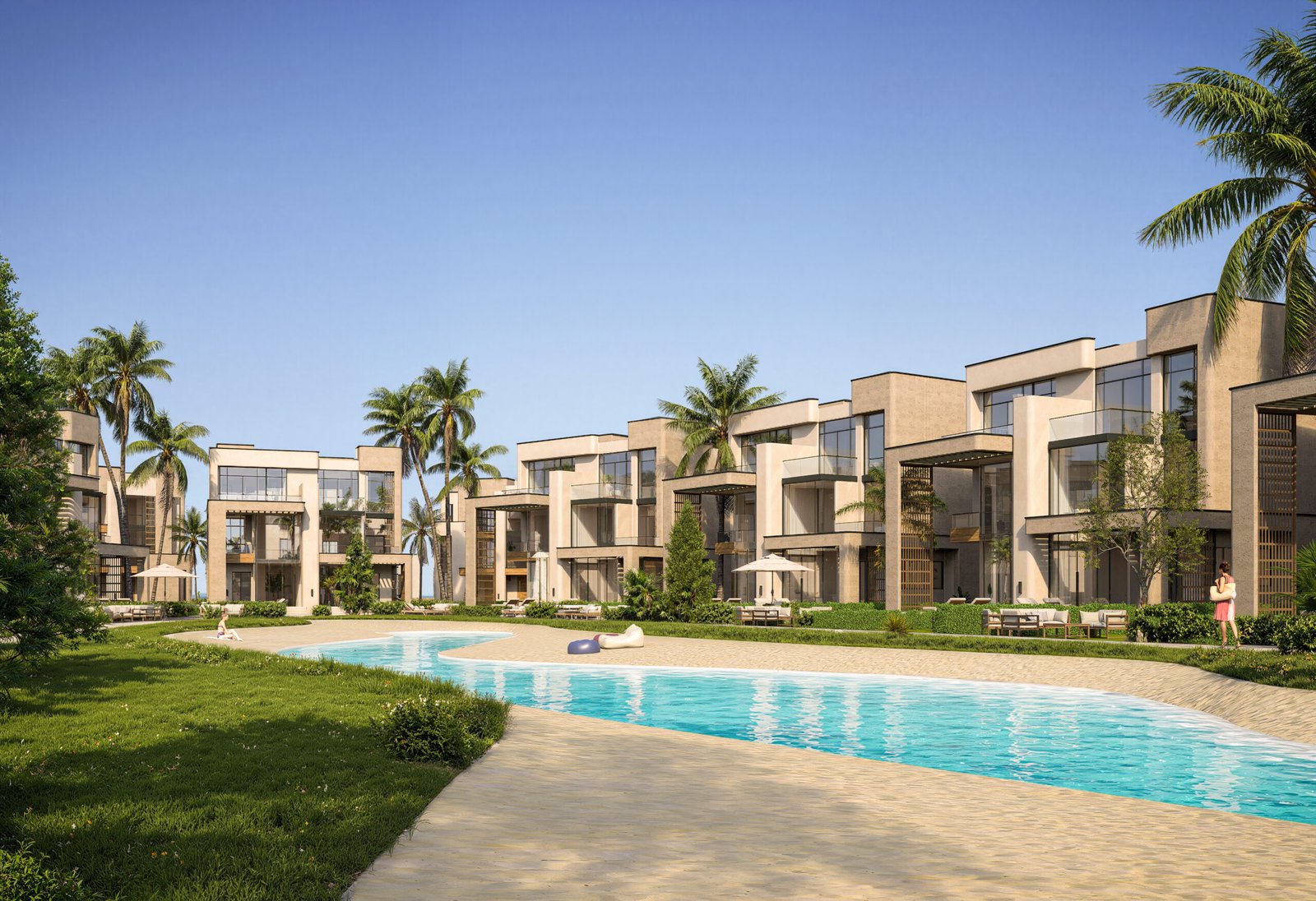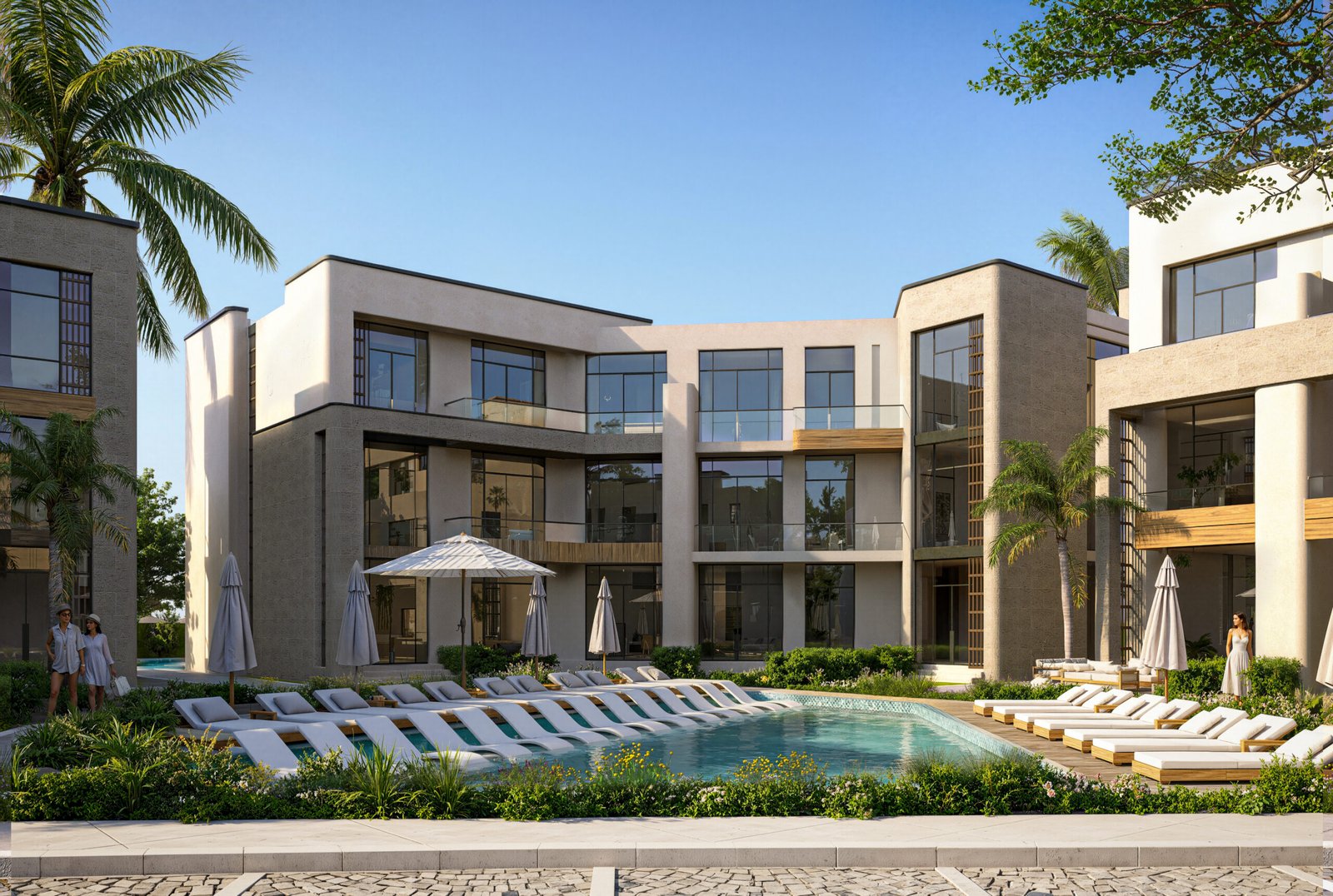 • Private & Communal Aquatic Layers: A dual-layer luxury offering. Residents benefit from the massive communal lagoon for social interaction and private pools for absolute seclusion within their own architectural footprint.